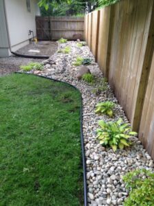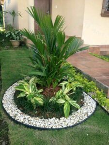 diseño jardinera con gravilla blanca